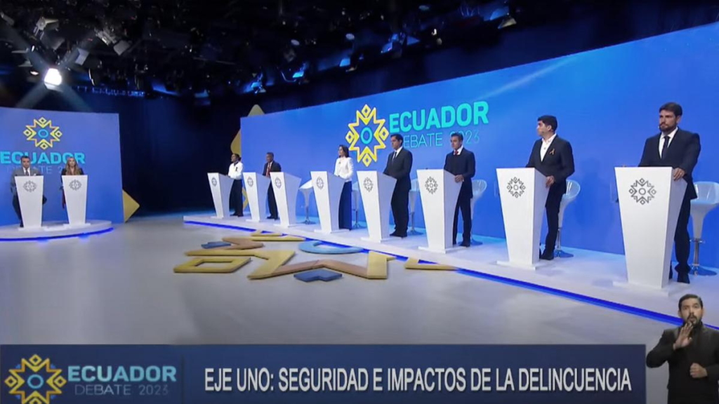 Con un atril vacío y un minuto de silencio, así dio inicio el debate presidencial en Ecuador el pasado 13 de agosto. Durante casi tres horas, siete candidatos presentaron sus propuestas y cuestionaron las de sus contrincantes alrededor de cinco ejes: seguridad, economía, políticas sociales, democracia y conservación del medioambiente.