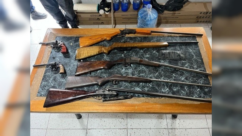 Según lo informado por la fuerza provincial, efectuaron un allanamiento en una casa de calle Hipólito Yrigoyen al 300 y se dieron con las armas. Había 100 cartuchos, dos carabinas con mira telescópica, tres escopetas de dos caños, un rifle y una pistola de aire comprimido.