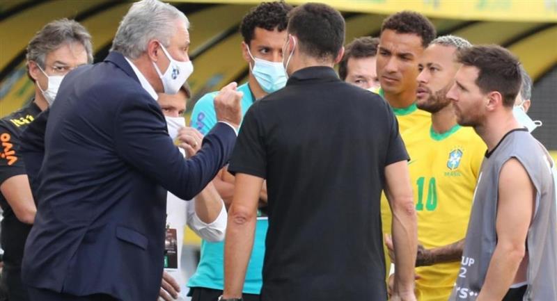 El encuentro fue interrumpido por la Agencia Nacional de Vigilancia Sanitaria de Brasil cuando transcurrían 5 minutos, al alegar que jugadores argentinos omitieron al llegar a Brasil país que habían estado en el Reino Unido hacía 14 días, lo que les obligaba a permanecer en aislamiento, de acuerdo a la normativa del país por la pandemia.