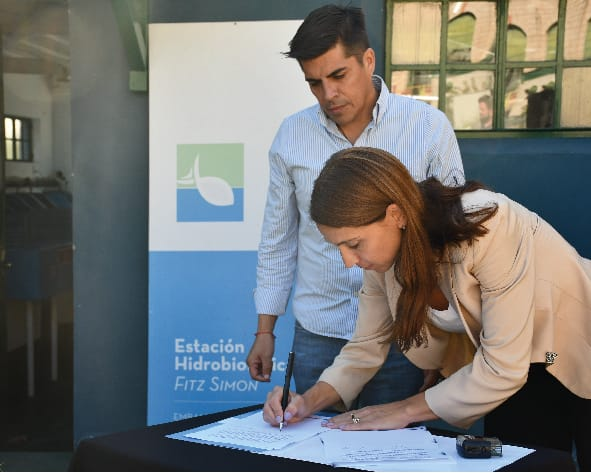 La ministra de Ambiente y Economía Circular, Victoria Flores, firmó un convenio de colaboración con el intendente de la localidad de Embalse, Mario Rivarola, para impulsar la puesta en valor de la Estación Hidrobiológica Fitz Simón.