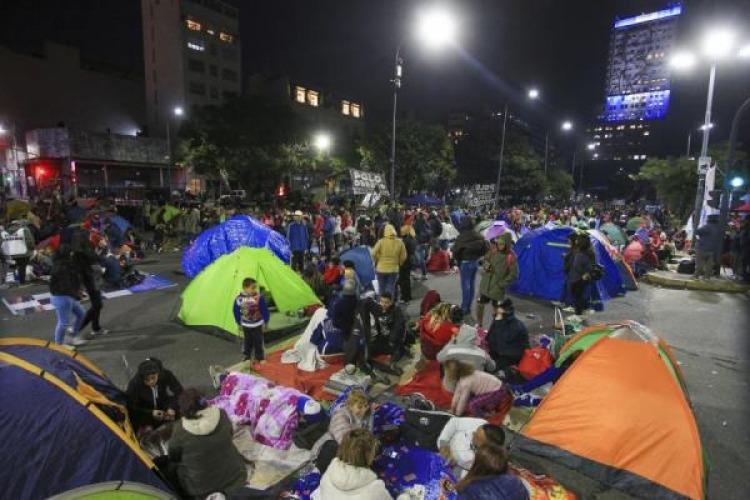 La decisión fue adoptada en una asamblea que tuvo lugar en la zona de acampe a las 11, durante la cual se resolvió desconcentrar la movilización. A causa de la protesta, el tránsito se mantenía interrumpido en la avenida 9 de Julio en el tramo que va desde la avenida Corrientes hasta San Juan, situación que se irá normalizando en las próximas horas.