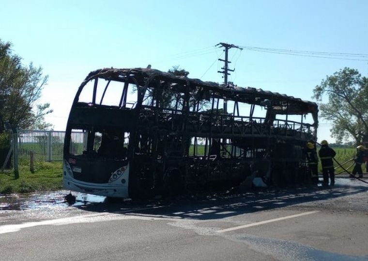 Voraz incendio de un colectivo en la ruta 9